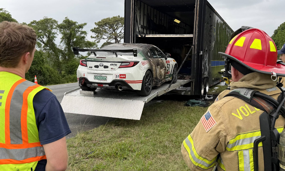 The Daytona Beach, Fla.-based team, which fields six cars in the SRO America-run single-make series, faced the significant setback on Monday just ten minutes outside of its workshop on I-95 en route to Austin.